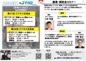 狛江駅すぐの「fabbit狛江」で、創業を目指す人たちのためのビジネス交流会とセミナーが開催されました。KIB(狛江イノベーションベース)とコマラジの共催で、3月11日と4月5日の2回実施。地域に根ざした創業支援の取り組 […]